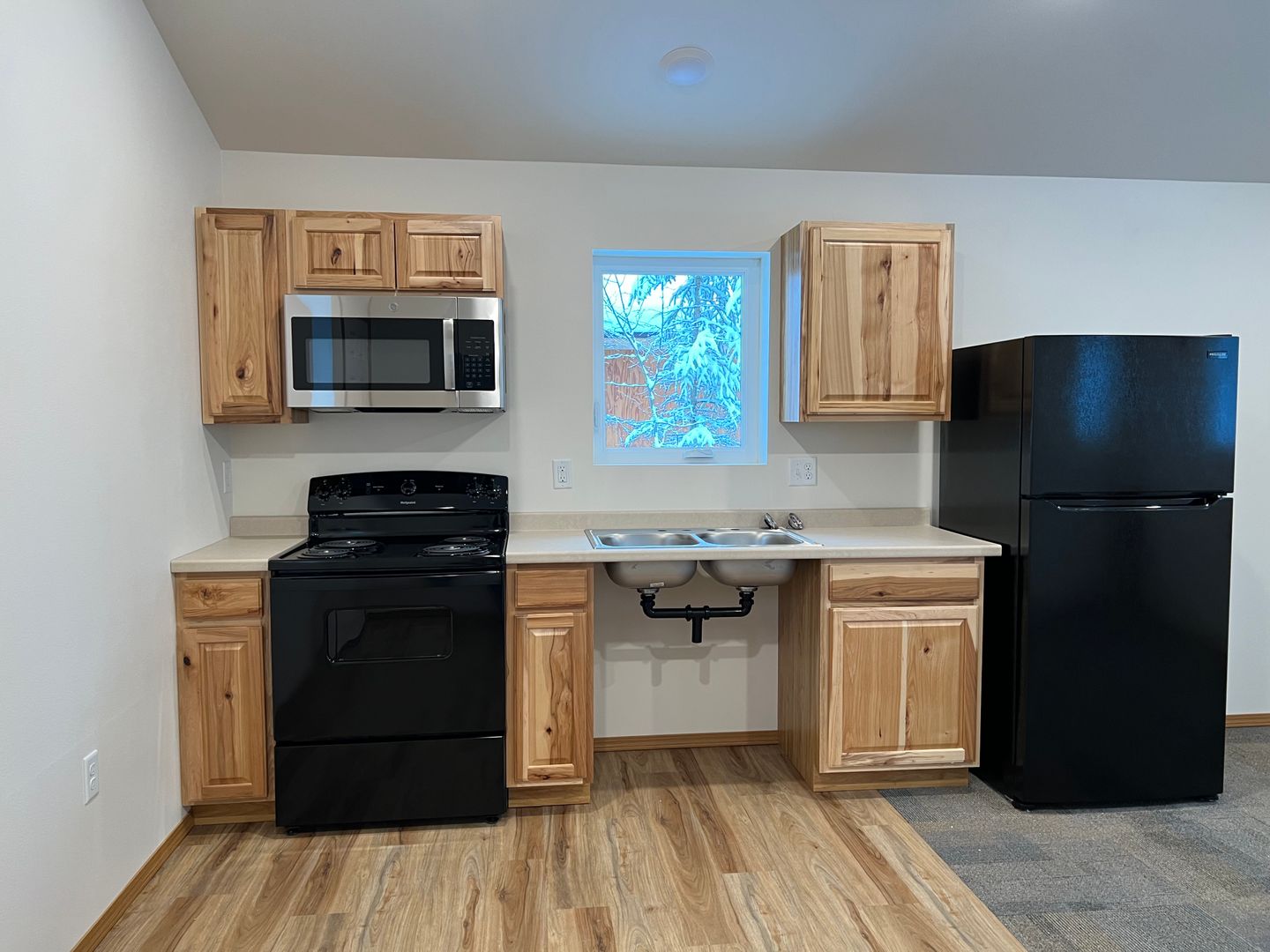 Dry cabin in Goldstream Valley with easy access to Fort Knox and UAF. Cozy, cute and energy efficient, it has been framed with 2x8 walls. The vaulted ceiling and recessed lighting make it bright and modern. Kitchen is equipped with full sized refrigerator, oven and microwave. Covered 4 ft. entry porch. Plowed roads, no steep hills or drives. Internet is available through ACS. Rent is $750.00 a month with a deposit. Tenant is responsible for electricity and garbage removal. SORRY! No pets or smoking. Unit has 1 parking space with available plug in. Applications are being accepted now and can be found on our website at www.empirealaska.net. For more information or to schedule a showing, please give us a call at (907)374-4663 M-F 9-5. Empire Realty, Sales and Management.